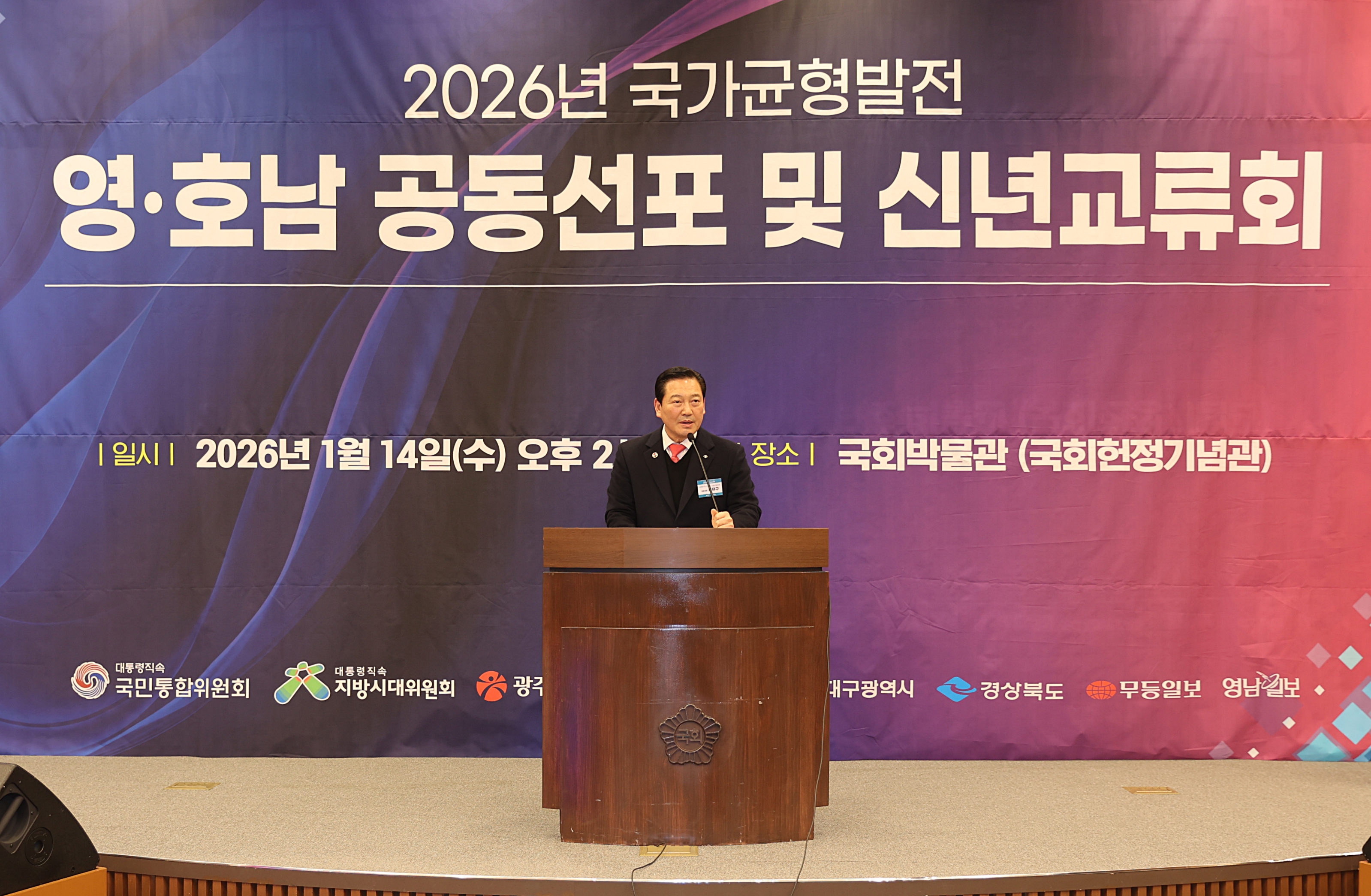 | 대한민국시장군수구청장협의회 조재구 대표회장, 2026 국가균형발전 영·호남 공동선포 및 신년교류회 참석(2026.1.14/국회박물관) |